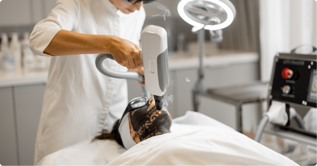This is the main part of the procedure. We perform a series of passes with a high-energy laser over the entire treatment area. The client may feel: