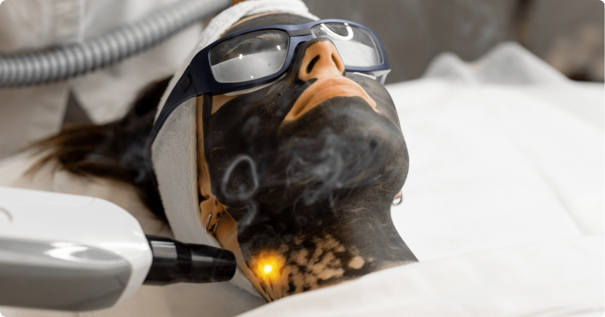 Activated carbon has natural adsorptive properties — it absorbs toxins, makeup residue, excess sebum, and dead skin cells. In a way, it prepares the “load” that will later be removed by the laser.