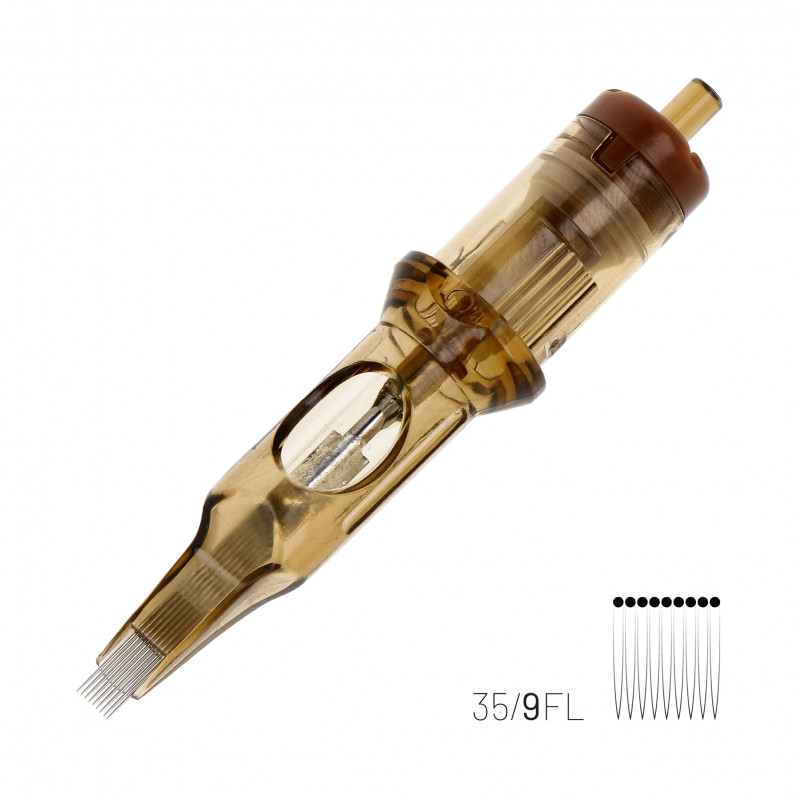 Top quality 0.35 mm (#12) FL Flat Kwadron Cartridge. Cartridges dedicated to shading and filling, ideal for large, wide surfaces, especially for geometric forms. The needles in these cartridges are arranged in a single row. One box contains 20 cartridges, price on a page for a single cartridge.