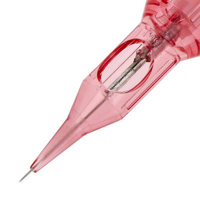 The needle is double-sharpened. In addition to the regular sharpening, the tip of the needle has been additionally sharpened at a different, more open angle. The PT needle is not as sharp as the LT, creating a more delicate impact on the skin.