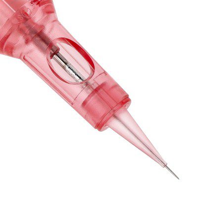 The needle is double-sharpened. In addition to the regular sharpening, the tip of the needle has been additionally sharpened at a different, more open angle. The PT needle is not as sharp as the LT, creating a more delicate impact on the skin.
