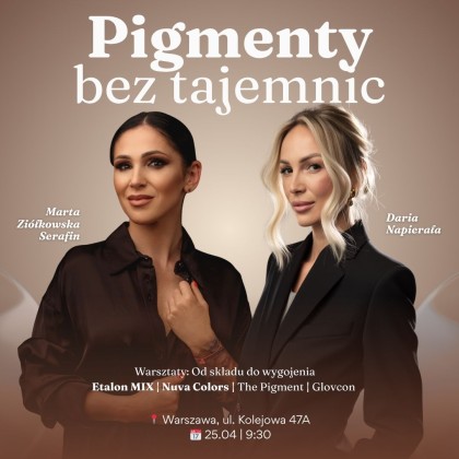 • Dodatkowo: Wprowadzenie do marki Etalon: filozofia i charakter pigmentów, Przegląd topowych kolorów (zdjęcia i zastosowanie w praktyce), Możliwość wykonania własnych prób pigmentów („maziajek”), Podstawy korekt i usuwania pigmentu, Podczas warsztatów każdy uczestnik będzie mógł przetestować pigmenty The Pigment oraz Glovcon.